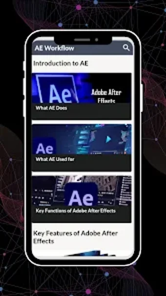 Zusätzlich enthält die App Anleitungen zu Audio- und Kompositionstechniken sowie zu Rendering- und Exportoptionen. Die klaren Erklärungen und hilfreichen Tipps zur Arbeitsweise machen es zu einem wertvollen Lernwerkzeug für alle, die sich mit Adobe After Effects auseinandersetzen möchten.